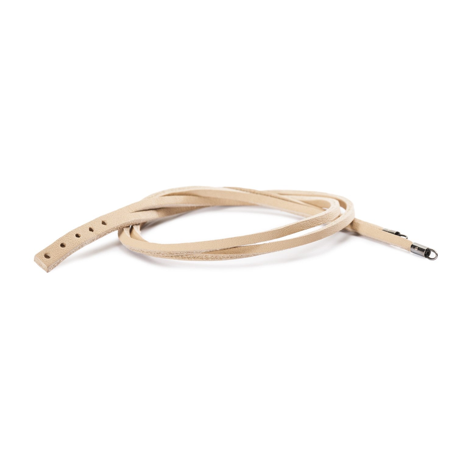 Dvojitý kožený náramek je dostupný ve třech velikostech. Náramek se omotá kolem zápěstí dvakrát.