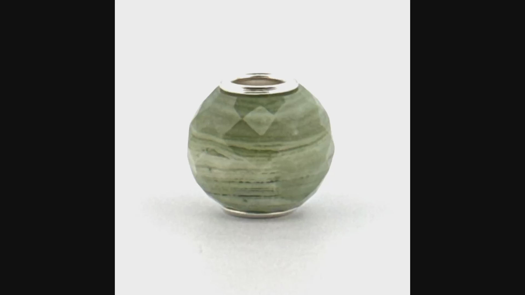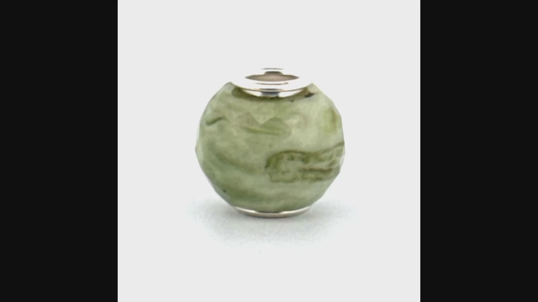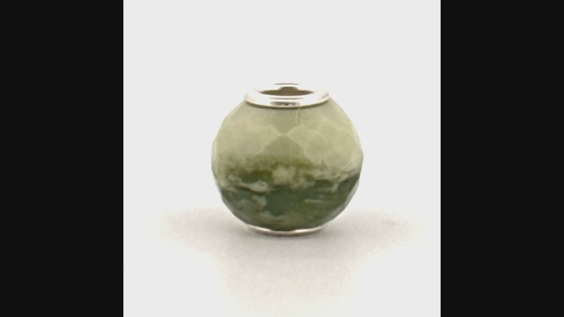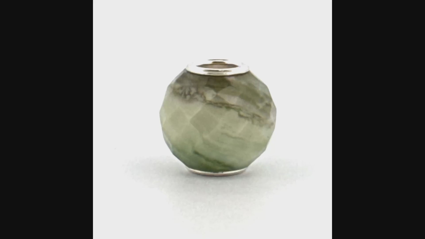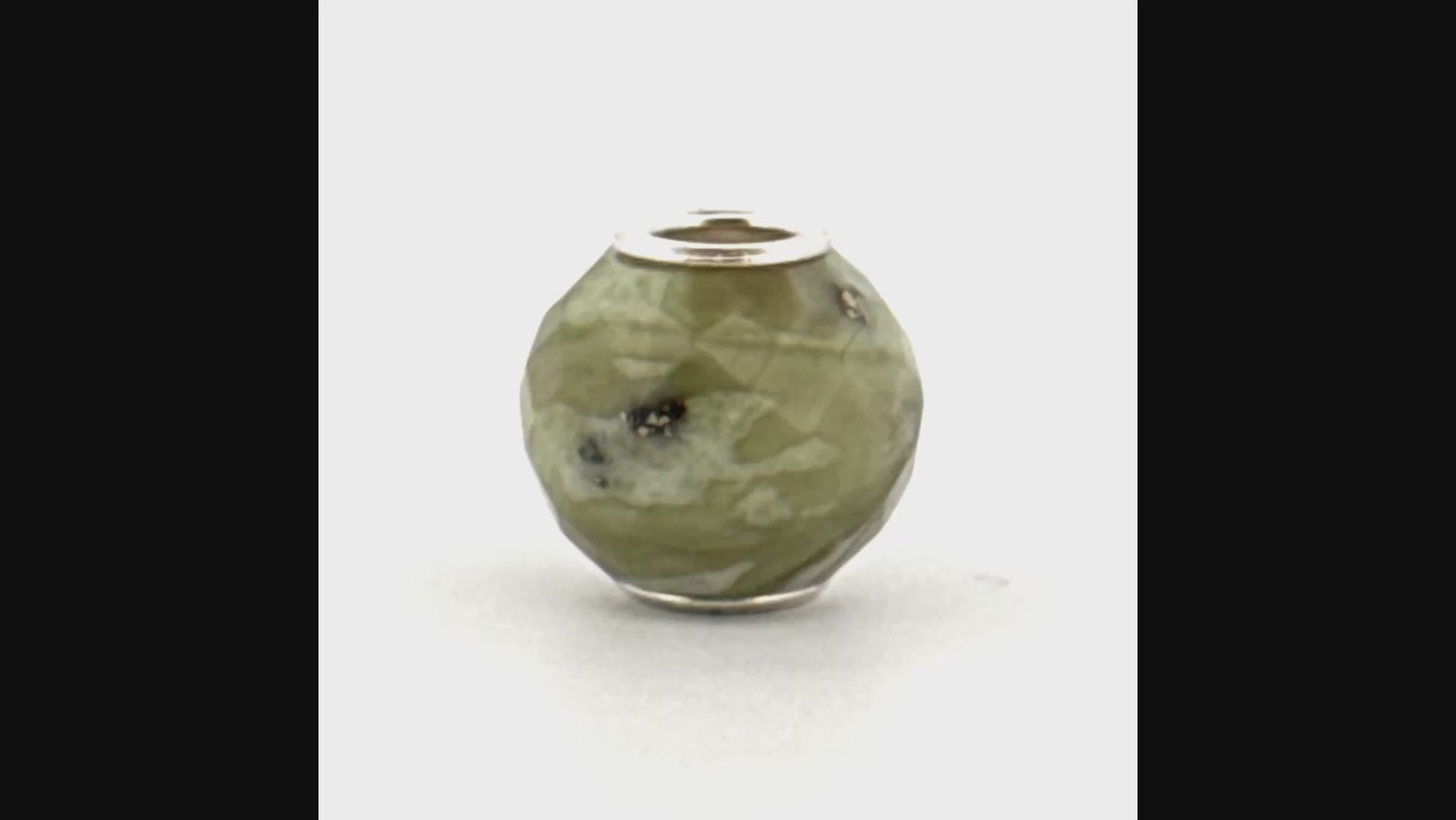Hand-faceted gemstone in soft shades of green and yellow. Each stone shows natural variations in colour and pattern that make every bead unique.