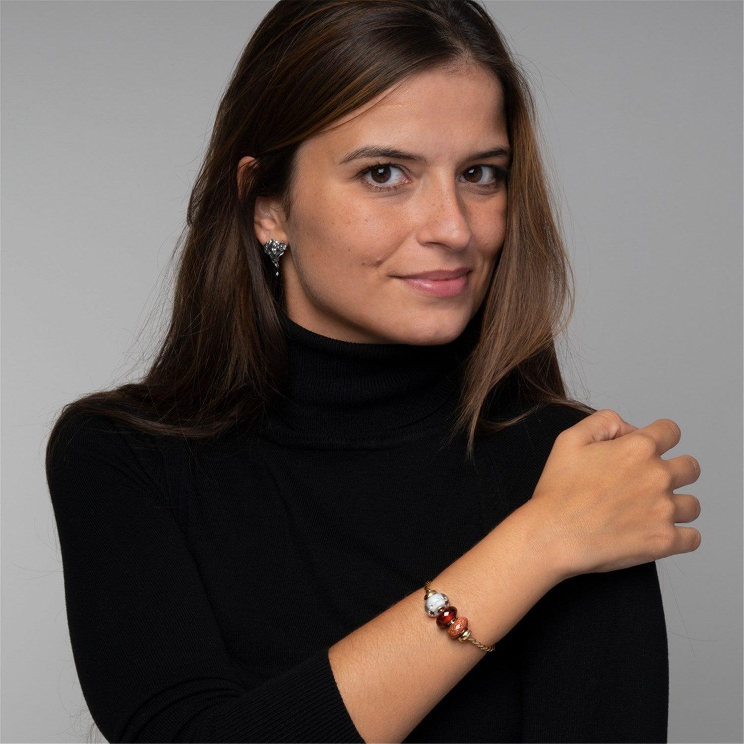 Tato křišťálová koule je osazena 13 kubickými zirkony. Korálek je lemován jemným odstínem stříbrné šedé.